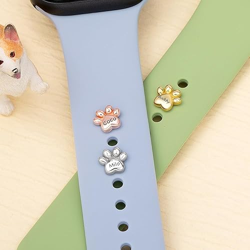 Personalized Smart Watch Band Charm Custom Dog Paw Name Charms Compatible with Apple Watch Band Smartwatch Strap Charm Accessories Pet Lover Gifts Decorative Cat Paw Print Watchband Charms