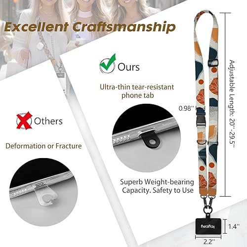 Versatile Lanyard: The cell phone lanyard length is adjustable from 20” to 29.5", allowing you to wear it around your neck or as a crossbody according to your preference. In addition to carrying your phone, you can also bring along keys, cards, wallet, headphones, sunglasses, camera, and other daily essentials. The detachable phone lanyard features a quick release buckle for easy use