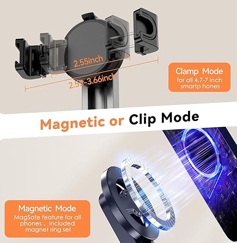 [4-in-1 Selfie Stick Tripod] ALAFLY's versatile selfie stick tripod features a keychain and a retractable selfie stick. It can be used as a tripod, handheld stabilizer, and phone holder, meeting your diverse needs. The specially designed non-slip phone clamp is compatible with non-MagSafe models, ensuring a secure mount for all phones and greater shooting freedom.