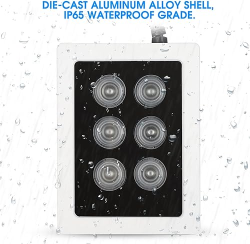 [DURABLE & WEATHERPROOF] Crafted with a die-cast aluminum alloy shell and IP66 rating, this infrared fill light is built to withstand harsh outdoor conditions. Whether it's rain, dust, or extreme temperatures, this light ensures reliable performance for your needs.