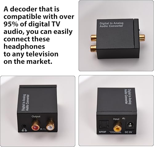 [WIRELESS HEADPHONES FOR TV] Our five in one wireless headphones are specifically designed for TV use allowing you to enjoy your favorite shows and movies at your preferred volume without disturbing others. With a built in decoder compatible with over 95% of digital TV audio these headphones easily connect to any television on the market. The seamless integration ensures a hassle setup and immediate enjoyment of crystal clear sound.