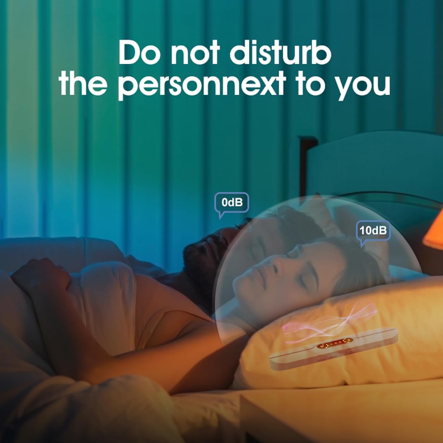 Perfect Sleep Companion for Side Sleepers: Drift off effortlessly with bone conduction sound transmitted under your pillow—no earbuds needed. This under pillow speaker for sleeping is ideal for side sleepers, providing clear audio even at low volumes. (Note: Sound transmission is optimized for side sleeping; effectiveness may be reduced when sleeping face-up. For optimal enjoyment, ensure you can comfortably hear gentle audio levels.)