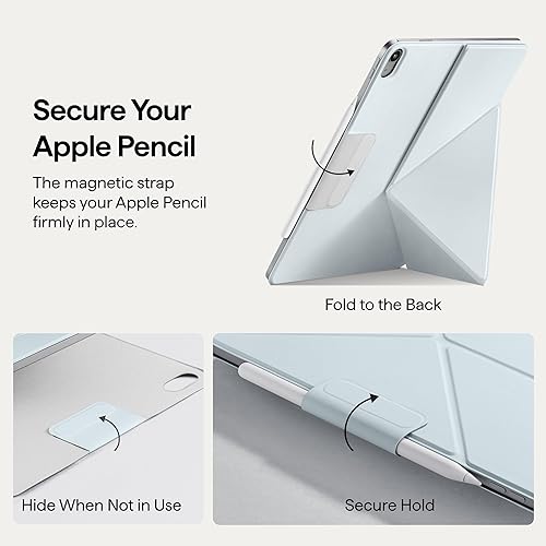 [Magnetic Design & Built-in Pencil Holder] Snap on/off easily. The Powerful magnets hold your iPad firmly, while the built-in strap secures the Apple Pencil (or tucks it away neatly).