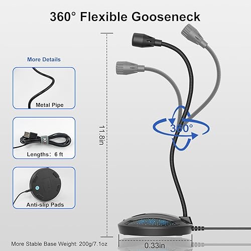 Flexible Gooseneck Wired Desktop Microphone: Designed for pc gaming, this microphone for computer features a fully adjustable 360-degree metal gooseneck for effortless positioning and optimal sound capture. The flexible 5.7-inch gooseneck offers superior convenience, allowing you to easily orient it horizontally or vertically to suit the speaker's comfort. Perfect for online meetings and capturing studio-quality audio during live recordings.