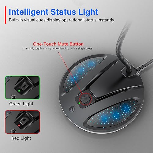 Plug & Play USB Computer Microphone, Flexible Gooseneck Desk Microphone for Podcasting, Streaming, Conference, Noise Canceling Microphone with Mute Button LED for PC/Mac