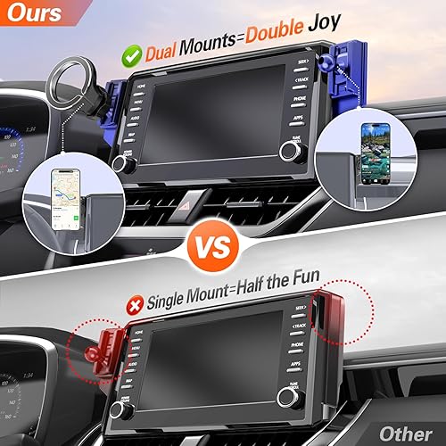 Newly Upgraded Design: Unlike single-sided fixed phone mount for corolla, ours has a dual-head design for flexible left/right installation (includes 1 magnetic mount + 2 ball heads, works with your own mount). Left side fits driver’s view—safe navigation/calls with eyes on road; right lets front passengers(family/friend) easily watch video, movie or take selfies with hands-free. One navigates, the other enjoys—no interference. Ideal for daily commutes/family trips, making every journey efficient and pleasant