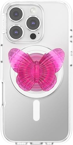 PopSockets Phone Grip for MagSafe with Kickstand, Magnetic Stand, Swappable Top, Secure Hold for iPhone MagSafe Cases, Phone & Tablet Grip - Molded Buttefly Magenta