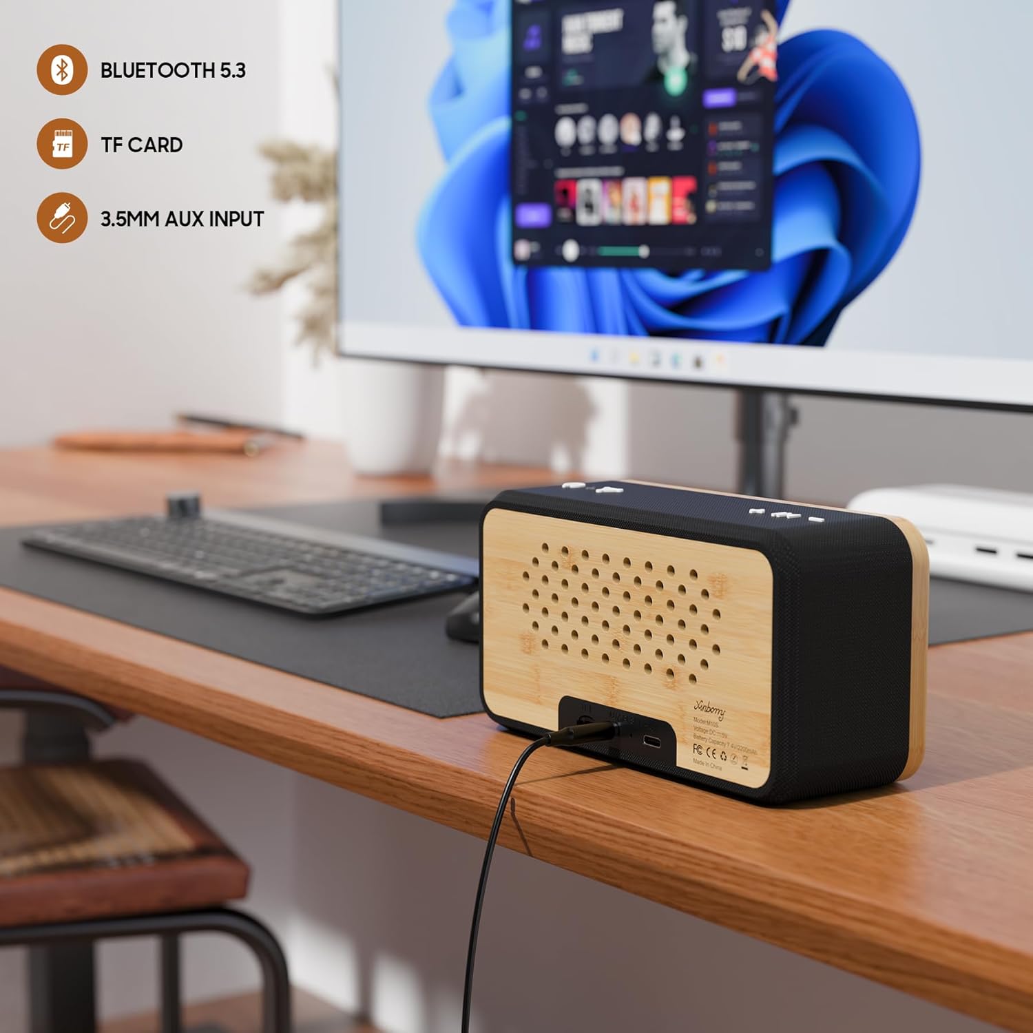 BLUETOOTH 5.3 CONNECTIVITY:Speakers bluetooth wireless pairs quickly with devices within 10 meters for a stable connection. Featuring low-power design and multiple playback options including TF card and 3.5mm audio jack, it's perfect for home office use or backyard barbecue parties