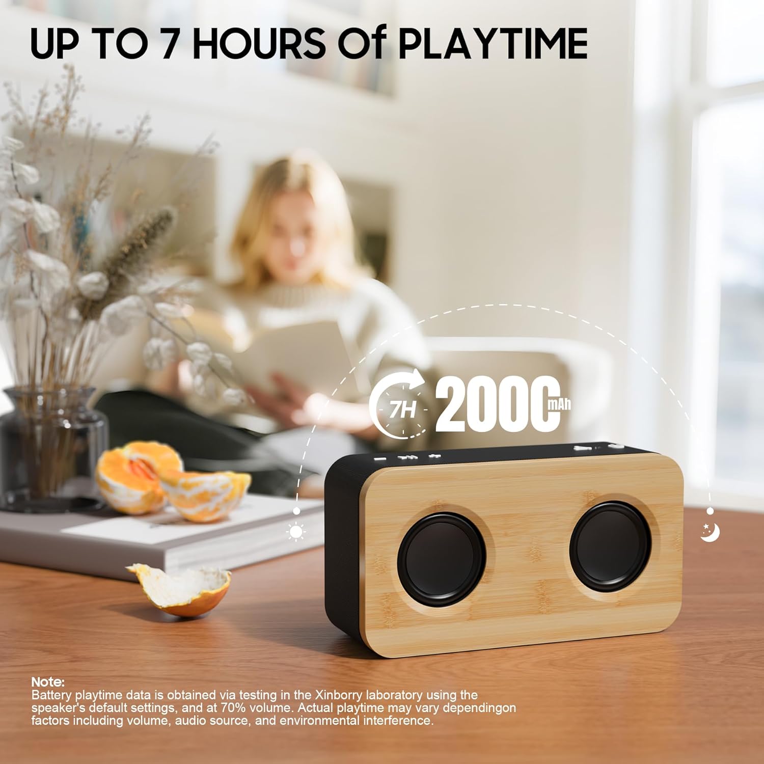 7 HOURS PLAYTIME : The speaker features a built-in 2000mAh rechargeable battery, supporting up to 7 hours of continuous playback. Its portable design and long-lasting battery life make it your reliable companion for both home office use and outdoor picnics