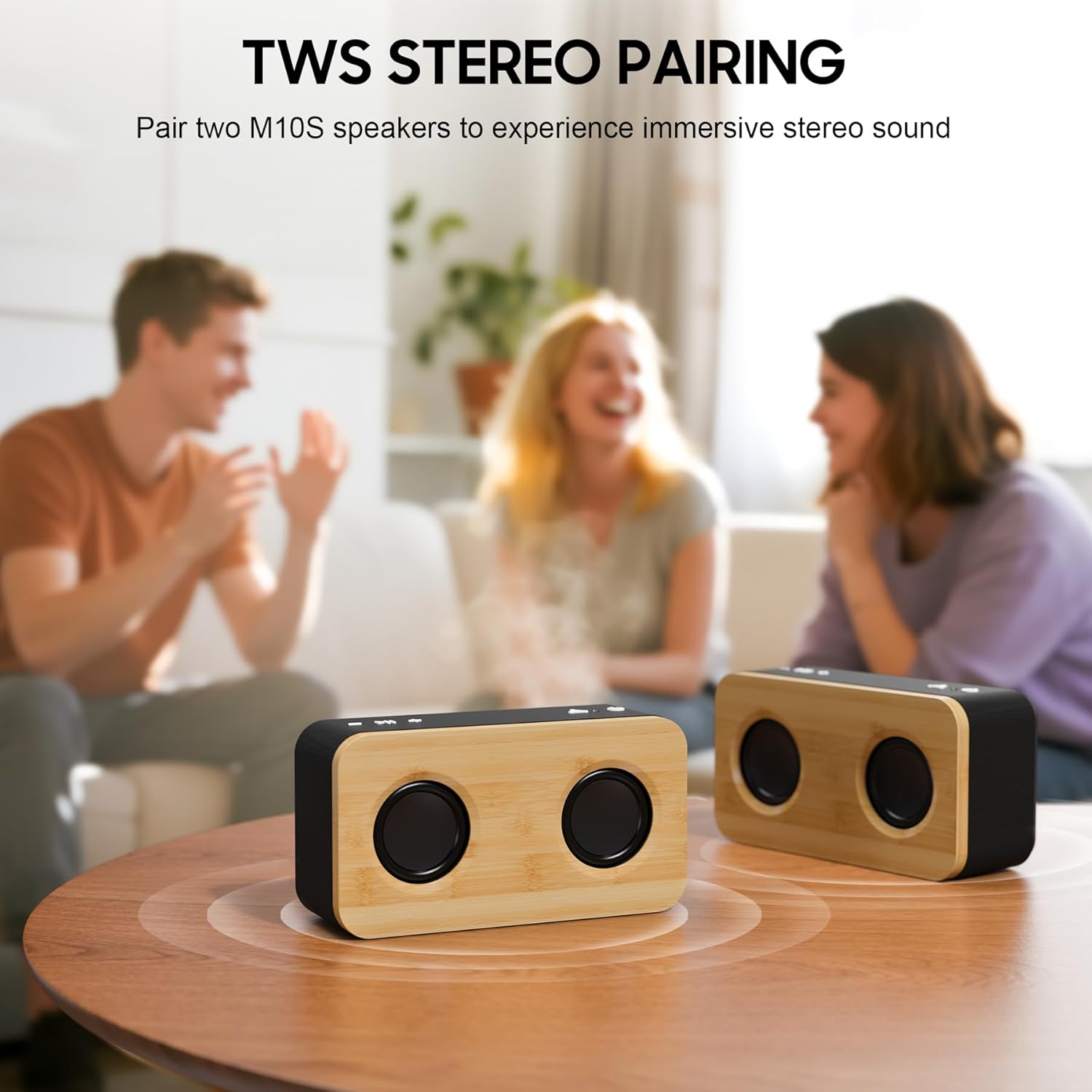 TWS STEREO PAIRING:Portable speaker bluetooth supports wireless TWS pairing, allowing you to connect two M10S speakers to create a stereo system that delivers a wider soundstage and an immersive listening experience