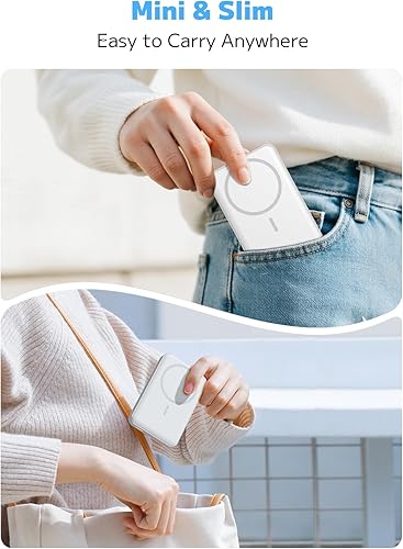 【Pocket-Friendly Design & Smart LED Display】:This compact portable charger (4.1”x2.7”x0.6”, 0.5lb) slips easily into pockets or small bags, making it ideal for flights, hikes, or daily commutes. Ditch bulky chargers and tangled cables. This magnetic power bank eliminates the hassle of packing, untangling, or losing charging wires during travel. The slim design won’t block your camera, and the matte finish resists fingerprints. Stay organized and space-efficient while enjoying true wireless freedom. The built-in LED screen Always know your power status with the precise LED battery indicator—no more guessing battery!