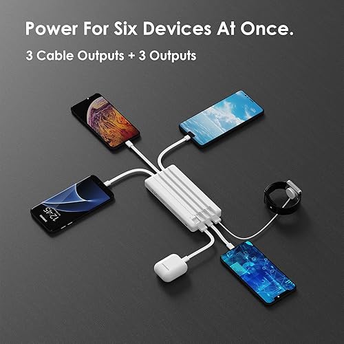 22.5W fast charging power bank features 6 outputs and 3 inputs, allowing you to charge up to 6 devices simultaneously.