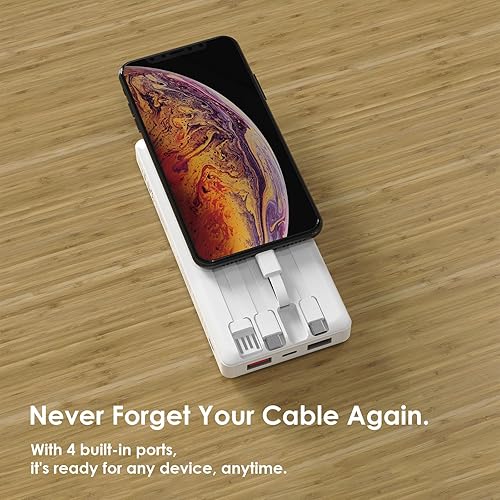 Portable Charger with Built in Cables, Slim 10000mAh Travel Battery Pack, 22.5W Fast Charging Phone Charger with USB-C/iOS/Micro-USB Cable, Powerbank for iPhone 17 16 15 14 13 12 series Samsung Google