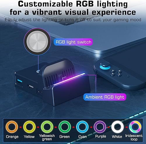 Portable Docking Station for Switch 2/Switch/Switch OLED, TV Dock with 4K HDMI Output, 45W Charging Input, RGB Lighting, USB 3.0 Port, Compact Charging Stand for Switch 2 Console (No Cords Included)