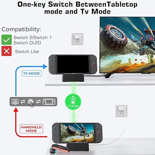 【Built-In Smart Chip for Safe Charging】 Equipped with a high-quality smart chip that prevents overcharging, overheating, and short circuits. Compact yet fully functional like the official dock, it allows safe charging while delivering a smooth gaming experience.