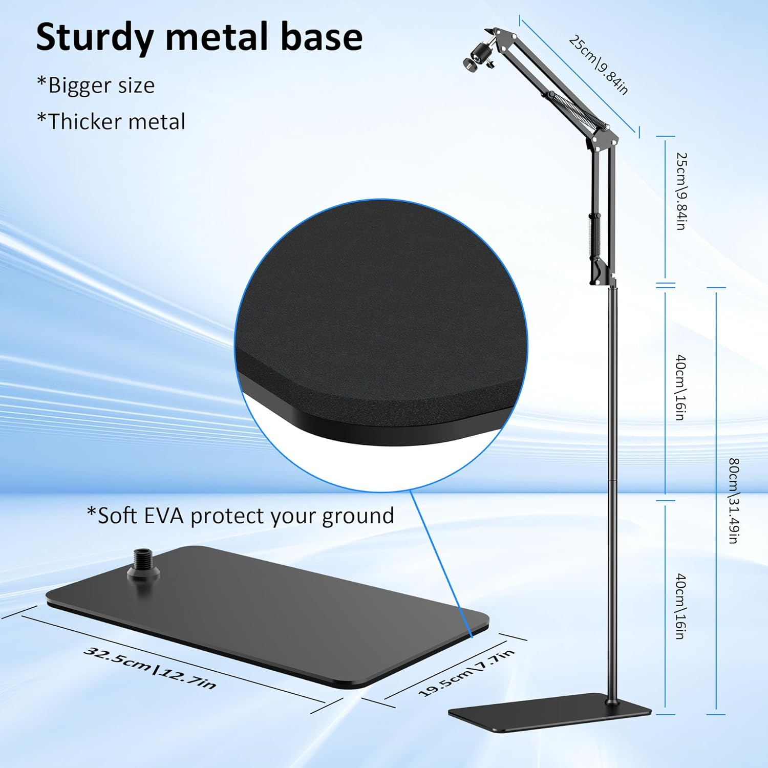 【 Desk or Floor mode with Sturdy Base 】The base is made of durable metal, thicker and bigger than others, provides more stable and reliable support. The 2 connection tubes are detachable, you can connect one for desk mode use or you can connect 2 for floor mode use. Each tube length is 15.7 inch/40cm;