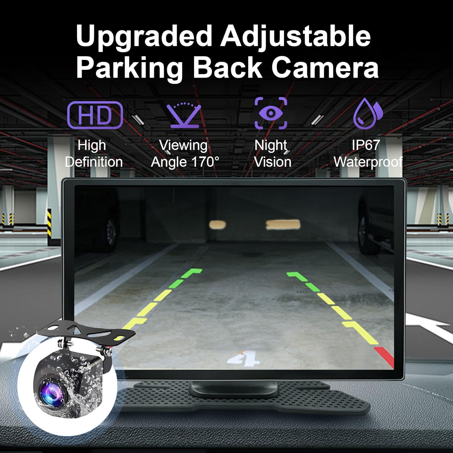 【1080P Dash Cam&Back up camera】: portable carplay screen with front and rear 1080P cameras provides detailed front-view looped video for peace of mind while driving.It support 170°Wide Vision and night vision.