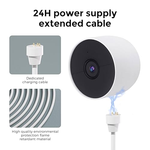 【Perfect Compatibility & Continuous Power】 Designed specifically for Google Nest Cam (Battery) 2nd Generation, this weatherproof power cable delivers non-stop charging—so you never need to change batteries or climb ladders again. Provide continuous power supply to your Nest Cam Outdoor or Indoor, ensuring 24/7 surveillance without interruption.