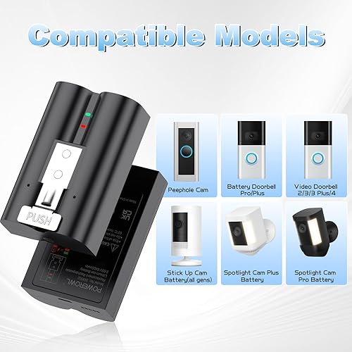 Premium Quality: As for the ring doorbell battery replacement, the battery are made of high-quality lithium-ion cells, ensuring stable and reliable performance. It provides a consistent power supply to keep your ring devices functioning.