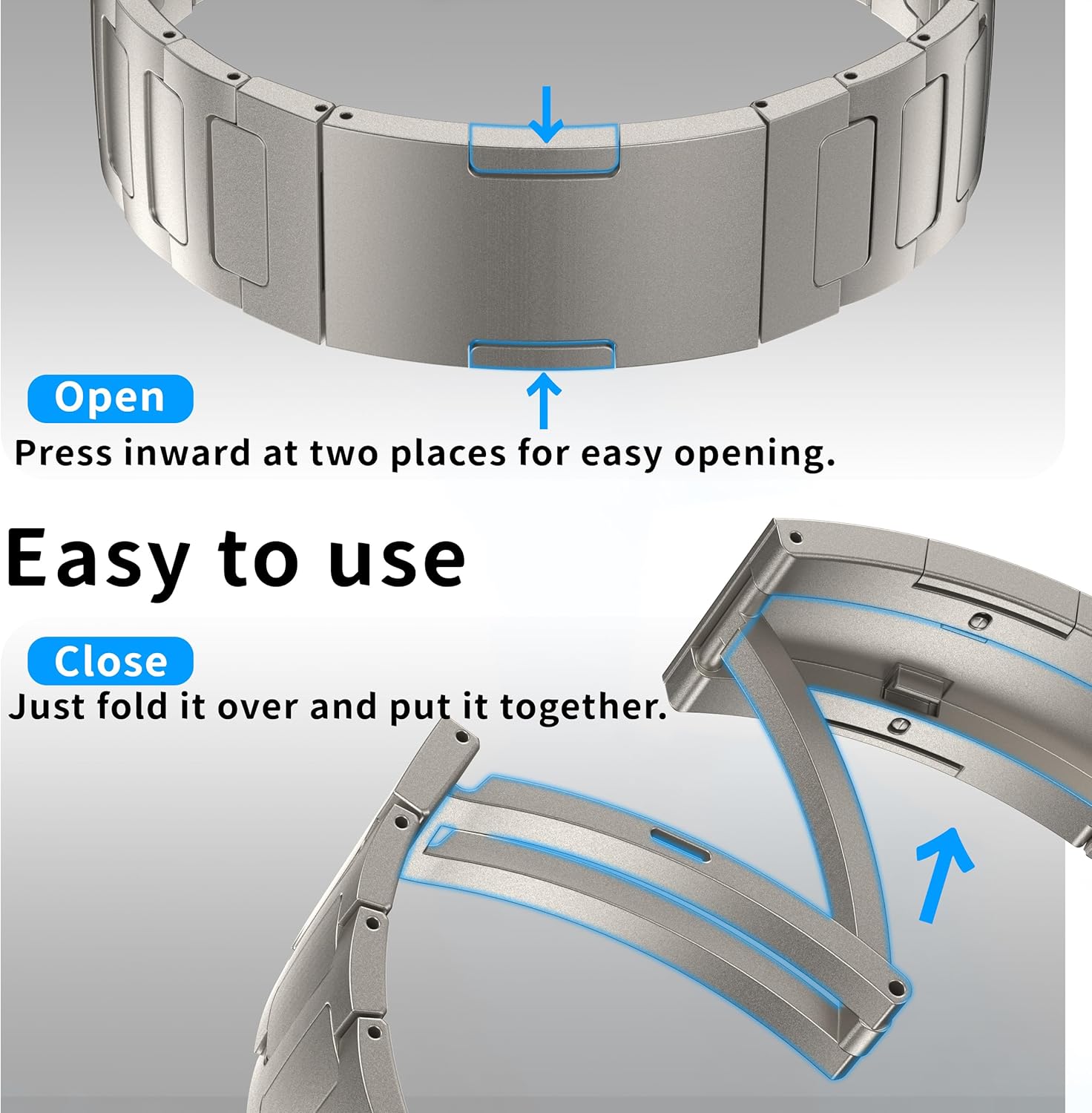 【100% Pure Titanium】This Apple Watch band is made from 100% pure titanium, offering an exceptional strength-to-weight ratio with lightness and durability. Compared to other metals, titanium is lightweight, resilient, and resistant to corrosion, making it less prone to deformation or discoloration even after prolonged use.
