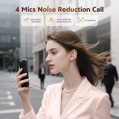 【AI-Powered 4 Mics for Crystal Calls】 Integrated with 4 microphones, it employs a multi-pronged approach to noise reduction. Wind noise reduction filters out unwanted gusts during outdoor calls, up to 45dB call noise cancellation drowns out background chatter in busy environments, and an AI-powered algorithm refines your voice, making it sound natural and crisp.