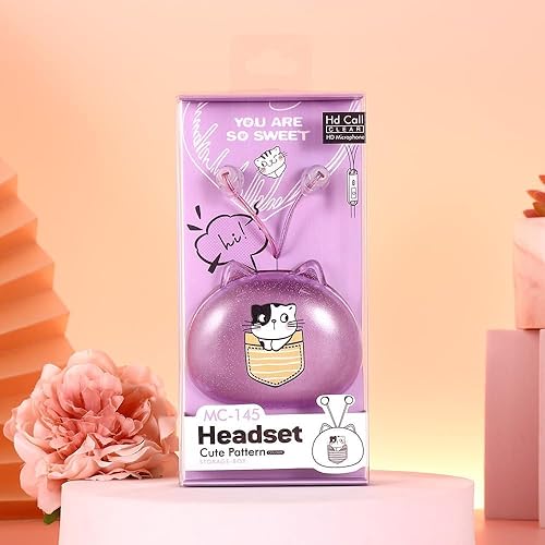 【Lovely Pocket Cat Earbuds】Featuring an adorable cat peeking from a pocket, these functional QearFun earphones for kids are eye-catching and available in multiple glittery colors. Perfect back-to-school supplies or a birthday gift for any cat lover.