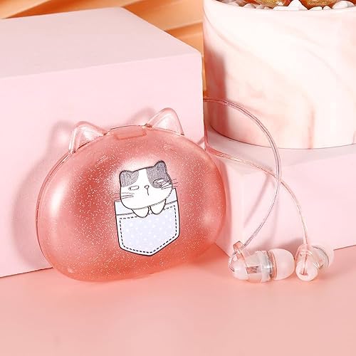 QearFun Cat Earbuds for Kids in-Ear Headphones,Kid Size Flat Cable Wired Earbud,Earphone with Microphone and Lovely Earphones Storage Case,Ideal Gifts for School Girls and Boys (Pink)(Pink)