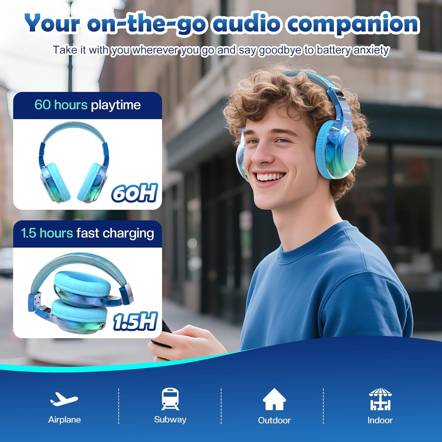 30-Hour Battery Life & Portable Foldable Design:With up to 30 hours of playtime and USB-C fast charging, these headphones eliminate battery anxiety, making them perfect for long flights, train journeys, or daily commutes on the subway. The foldable design and lightweight construction (only 0.34lb) make them easy to carry and store, whether your child is heading to school, the library, or the park.