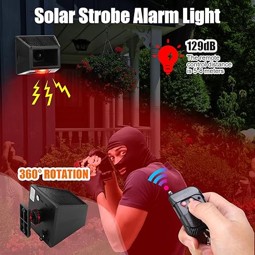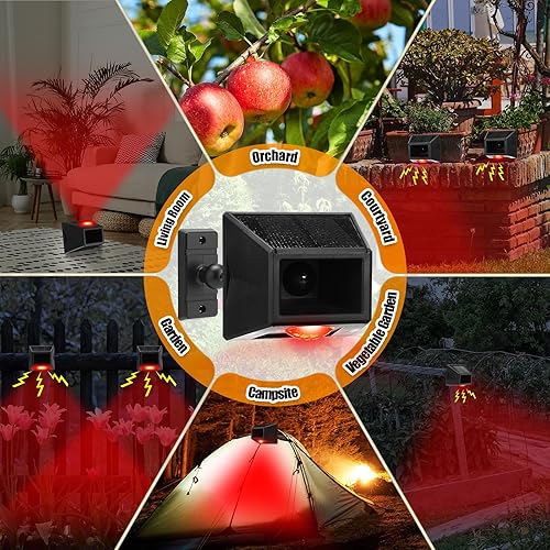 Motion-Activated Ultrasonic Siren Flashing Light – Detects movement via PIR infrared sensor and activates a powerful 129dB sound and flashing red light; It has a powerful function of sound and light to scare off deer, raccoons, stray dogs, cats, birds, and other intruders