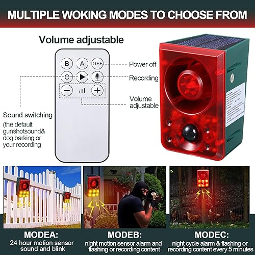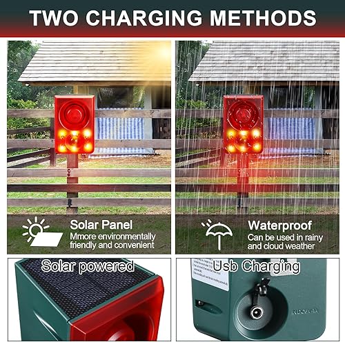 Comment on "Qualirey 2 Pcs Solar Outdoor Motion Sensor Alarm Animal Deterrent Gunshot Sound Dog Barking 130db Loud Noise Maker 3 Modes with USB Remote Control, Support Recording and Volume Adjustment (Red)(Red,2)"
