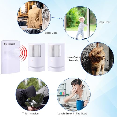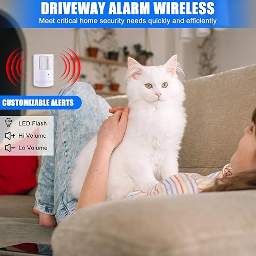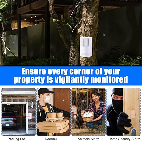 Versatile Applications: beyond driveways, use this versatile alarm for protecting alleys, monitoring critters, guarding car interiors, or securing supply closets; Its wide detection range covers up to 23 feet, sending signals to your receiver like a long-range doorbell, ensuring every corner of your property is vigilantly monitored