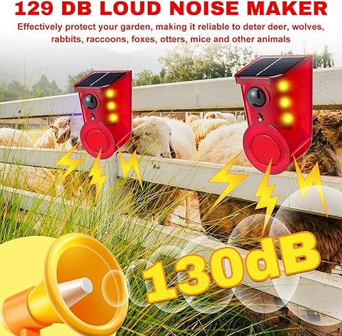 Comment on "Qualirey 4 Pack Solar Outdoor Motion Sensor Alarm with Stake, 129db Sound Alert and Multi-Mode 6 LEDs Flash Warning Lights for Garden Farm Repelling Cat Dog Rabbit Raccoon Fox"