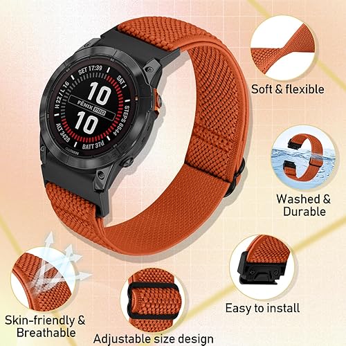 Comment on "Quickfit 22mm Bands for Garmin Fenix 8 47mm/Fenix E 47mm/Fenix 7/Fenix 7 Pro/Fenix 6/Fenix 6 Pro/Fenix 5/5 Plus/Epix Gen 2/Approach S62/S60 Band,Elastic Watch Nylon Strap Wristband(Black+Orange)"