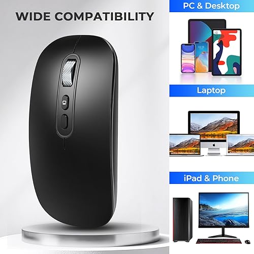 RaceGT USB C Wireless Mouse, Rechargeable Dual-Mode Mouse(Type-c and Bluetooth), Silent Bluetooth Mice for MacBook Air/Pro, Slim Portable Travel Mice for iPad Mac Laptop PC Computer(Black- Dual Mode)