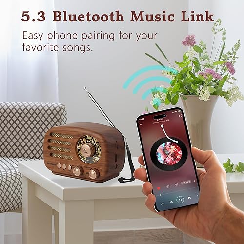 【Immersive TWS Stereo Sound】Enjoy crisp, room-filling audio with a powerful speaker. Take this vintage radio anywhere for clear music and programs. Pair two vintage radio for TWS 2.0 stereo sound - perfect for home or outdoor use