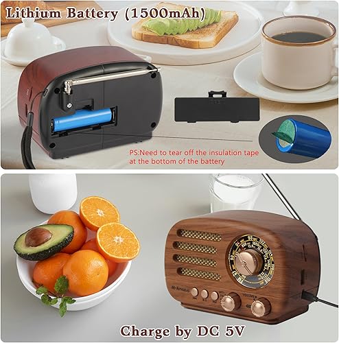 【Best Gift and Retro Style】This small radio features easy-to-use knobs and a clear dial, making it perfect for elderly and children to use. The retro design of this small radio will add charm to any room. Perfect for gift giving - camping, kitchen or daily use