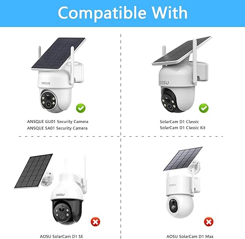 Best partner: This camera sun and rain cover is the best partner for your AOSU solarcam d1 classic /kit and ANSQUE GU01/SA01 cameras. It can better protect your outdoor camera without blocking the camera's view or affecting night vision.