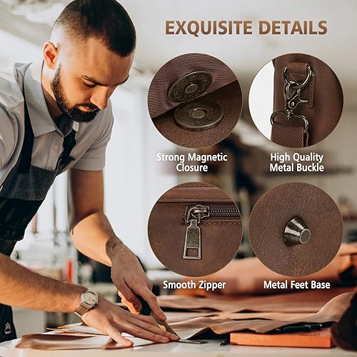 PROFESSIONAL WORK BAG: The Main compartment of the messenger bag for men is equipped with a padded laptop compartment that fits for laptop up to 15.6 inches;1 iPad pocket and 1 wall zipper pocket. Under the flap of the leather messenger bag, there is a large magnetic snap pocket(with 4 pen slots,2 slip pockets, and a removable keychain). The exterior of the leather laptop bag for men features a front zipper pocket and a back zipper pocket for easy access