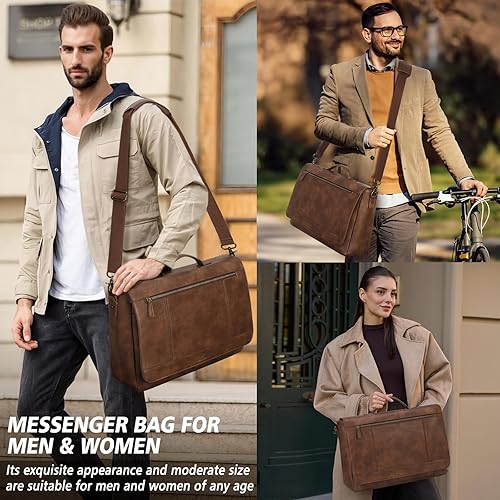 ALL-PURPOSE SATCHEL BAG: Whether you are looking for a laptop bag, a college student leather shoulder bag, a work bag, a business bag, or an everyday messenger bag, this messenger bag for women and men is suitable. This messenger bag's retro and simple appearance is unique and elegant, and can be matched with various clothes, whether formal or casual. The clamshell design and the thick bottom design (with 4 metal bases) of this briefcase ensure that this messenger bag always keeps its good shape