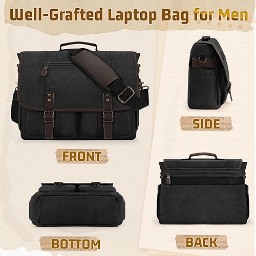 【Convenient Magnetic Clasp & Comfortable Fit】The canvas laptop bag for men is double fastened by magnetic clasp and zipper. The padded laptop sleeve fits most laptops under 17 inches, and the sticky seal ensures it is stable