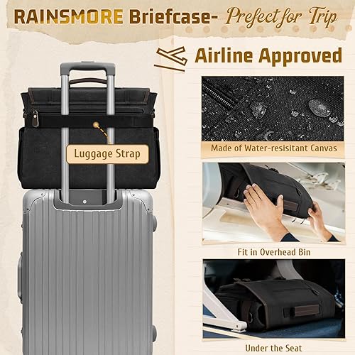 RAINSMORE Mens Messenger Bag 17-17.3 Inch Vintage Canvas Briefcase Water-resistant Large Computer Laptop Bag Rugged Satchel Shoulder Bag for Work Travel, Bookbag for College(Black)