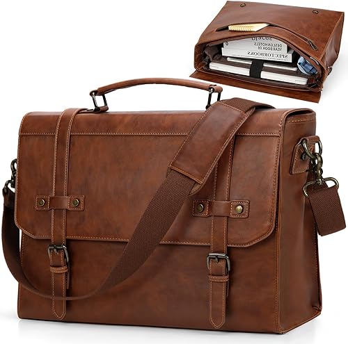 【17 inch Vintage Laptop Bag】The size of this Laptop messenger bag is 16.9"L * 5.9"W * 13"H.Perfect for daily commuting, business events and travel, this large & multi-compartment messenger bag keeps your essentials safe and stylish.Plus,The design of this laptop bag for men emphasizes practicality and vintage style, making it an excellent messenger bag, business laptop bag, satchel bag, and shoulder bag.