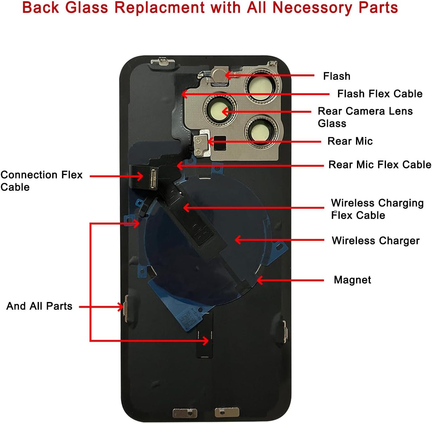 【Pre-Installed All Necessary Parts】Our replacement back glass come with pre-installed plate + pre-installed a flex cable for the wireless charging coil there as well as a flashlight and microphone + pre-installed camera frame and lens glass. Removing the old back glass allows for immediate replacement without the need to remove any parts, saving a lot of time and making installation easy, greatly improving the success rate!