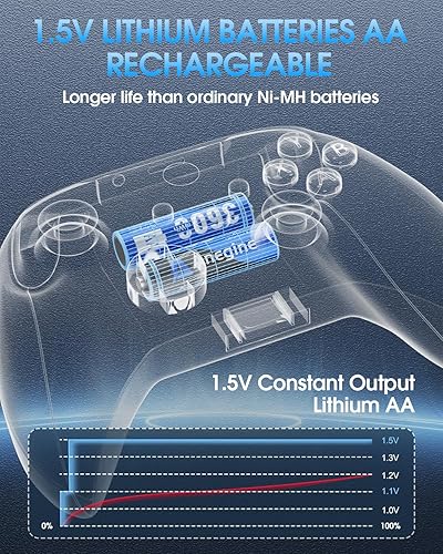 1.5V Rechargeable AA Batteries Lithium: Anegine aa lithium batteries will maintain constant output of 1.5V, and will be lower at 1.1V when these aa batteries are running out, make sure your devices runs smoothly, and provides longer battery life