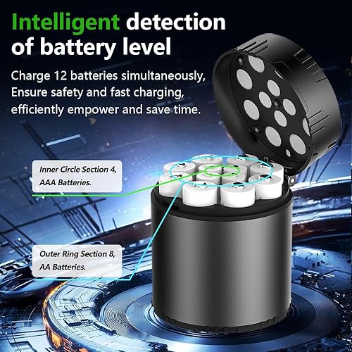【AA/AAA Battery Dual Compatibility】Switch effortlessly between AA and AAA battery slots using the included adapter (no tools needed)—one charger, two uses! Smartly detects battery type (Li-ion) to prevent errors. Works with all rechargeable battery brands—no need to buy extras!