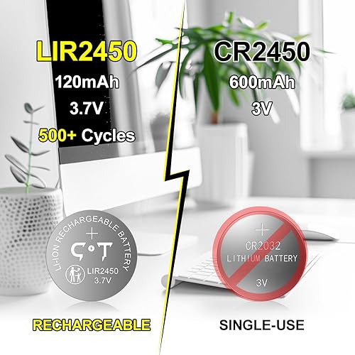 Rechargeable & Cost-Saving.Each 3.7V Lir2450 battery can be recharged 500+ times cycle life.It can replace disposable 3V cr2450 battery.Reducing waste and save money!Of course Lir2450 batteries with 120mAh CAN NOT work as long as cr2450 batteries with 600mAh.