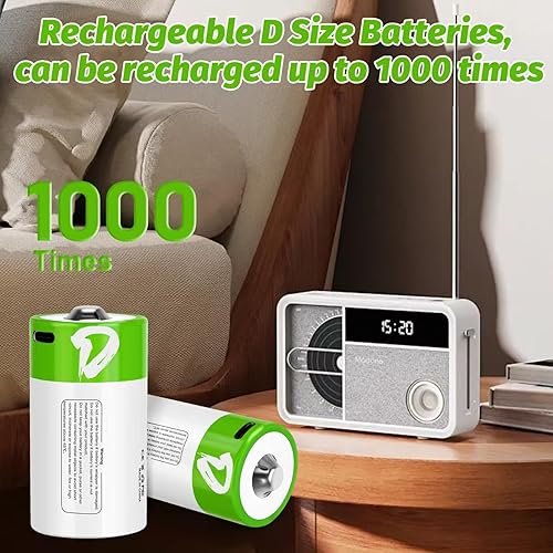Cost-Effective: With 1000 recharge cycles, 1 rechargeable lithium D battery is equivalent to 1000 single use D batteries, no need to frequently buy, replace and dispose of batteries; Say goodbye to disposable D batteries that end up in landfills and start using our rechargeable D type batteries
