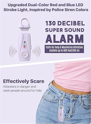 RECHARGEABLE SAFETY EMERGENCY ALARM: This compact personal security alarm emits 130 dB to disorient attackers and alert others. Its loud noise provides a chance to escape and signals nearby people for help, keeping you and your loved ones protected