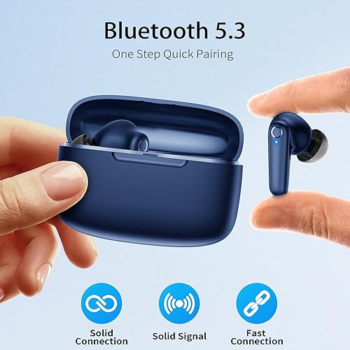 Redpepper Wireless Ear Buds Bluetooth 5.3 60H Using Time Headphones Deep Bass Clear Call Earbuds with Built-in Mic Touch Control Lightweight Headsets for Studying Working Gaming Black(Blue)