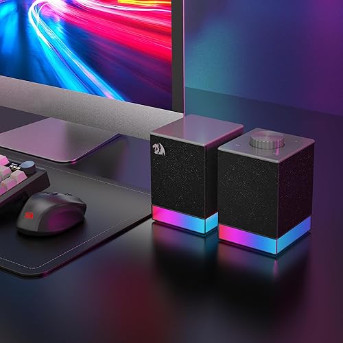 Redragon GS517 RGB Computer Speaker - 2.0 Stereo Sound System with BT & USB Dual Connectivity, 8 RGB Lighting Effects, Touch Controls & Volume Knob - Perfect for Gaming & Multimedia